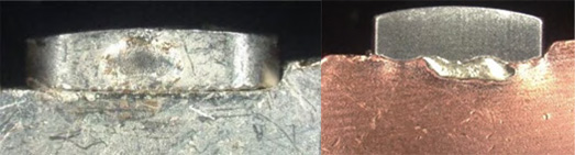 En el estudio, el conjunto de contacto móvil original utilizaba soldadura fuerte por resistencia. La inspección inicial mostró una buena apariencia, una resistencia al corte adecuada y una unión metalográfica generalmente aceptable.